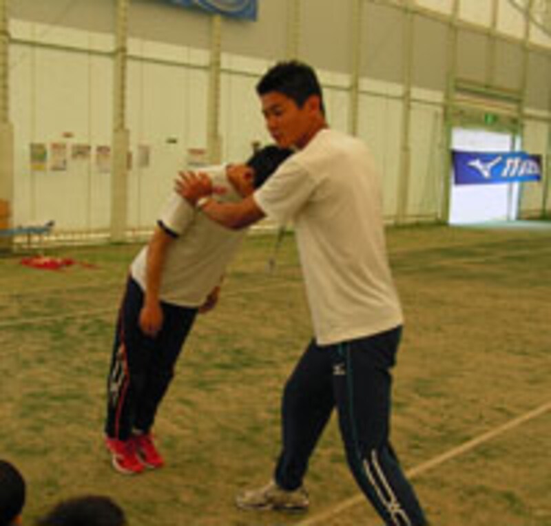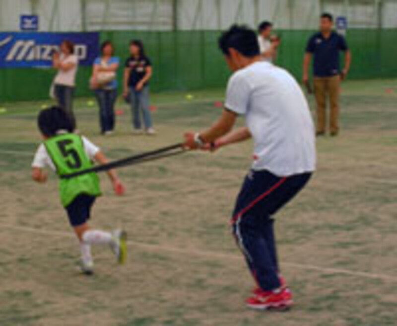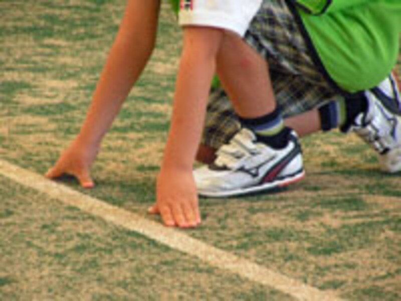幼稚園や小学校の運動会では、いかに良いスタートをきるかが勝負の大きな分かれ目になると木越さんは指摘します。「細かい腕ふりなどは、運動会レベルではそれほど問題になりません。正しいスタートの姿勢を体に覚えこませるだけでも、タイムはかなり違ってくるはずです」(木越さん)。そこで必勝塾でもスタートに関してのコーチが重点的に行われました。