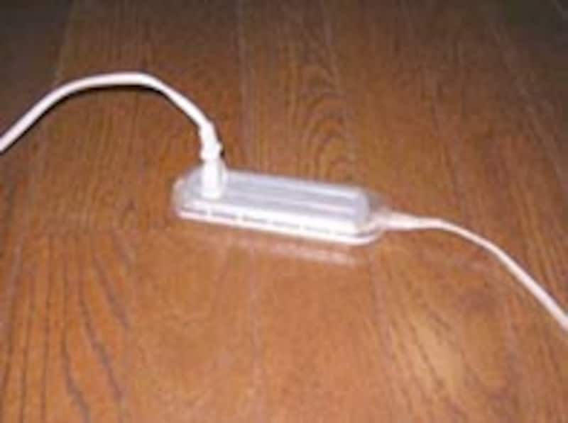 | 写真のような和室と洋室の間には敷居があることも多く、こういったわずかな段差につまずくこともあります | 適切な場所にコンセントがないとこのように床に延長コードを這わせることになり、これまたとても危険 |