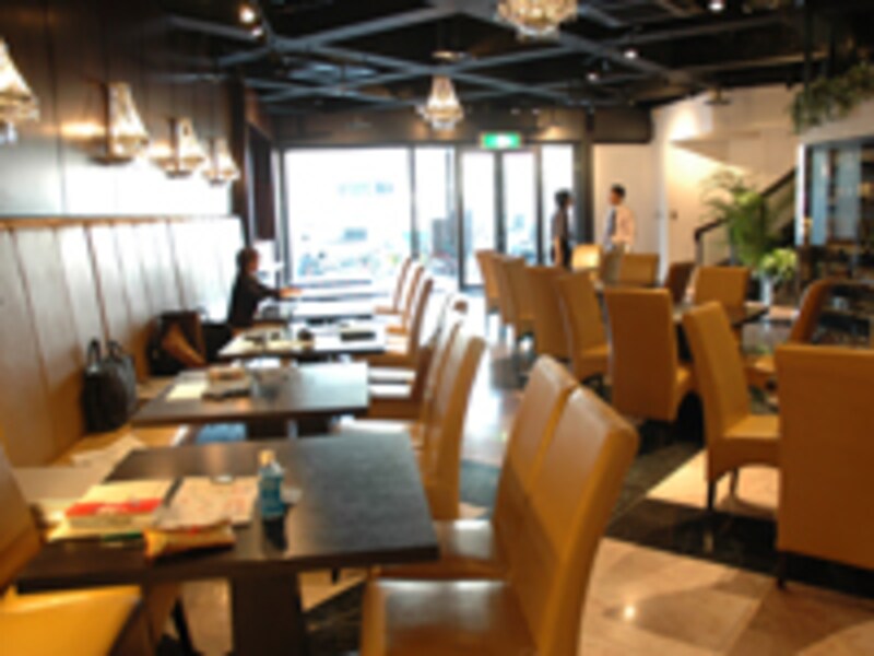 | ▲1Fカフェから外を見る。道行く人がカフェを間違えて入ってくることがある |