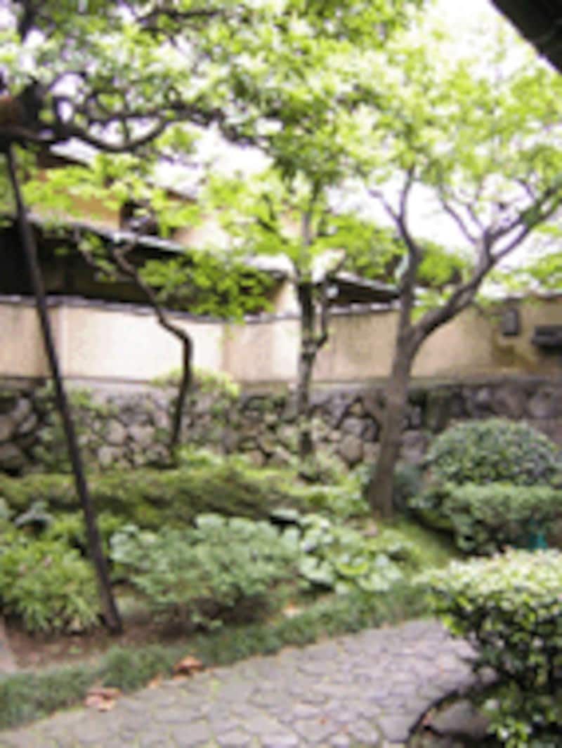 どっしりとした木の門をくぐってから玄関までのアプローチには、石が敷き詰められ、植栽が施されています。それほど長いアプローチではないのですが、訪れた人はその門の中に入った途端、都会の喧騒を一瞬、忘れてしまうでしょう。庭先に植えられた木々の緑によって、別世界が広がっているのです。