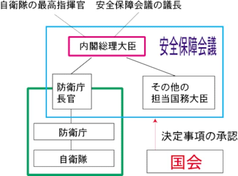 戦後、このようなことがないように、内閣が自衛隊を指揮するように、自衛隊法で定められています(最高指揮者は首相)。内閣の各大臣(首相含む)は憲法で「文民でなくてはならない」と定めれられていますから(66条2項)、法制上は文民統制が確立されているわけです。