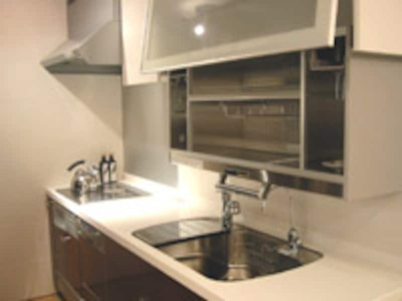 ![]() | IHクッキングヒーターを搭載したキッチン。シンク上の吊り戸棚はスイッチひとつで上下する自動昇降機能付き。 | マンションは地上32階建てで総戸数291戸。第1期の販売は高層階の25戸を7月下旬から登録受付というスケジュールです。インフォメーションセンター(販売センター)は建設地のすぐ近くなので、工事中の建物の様子をみることもできます。