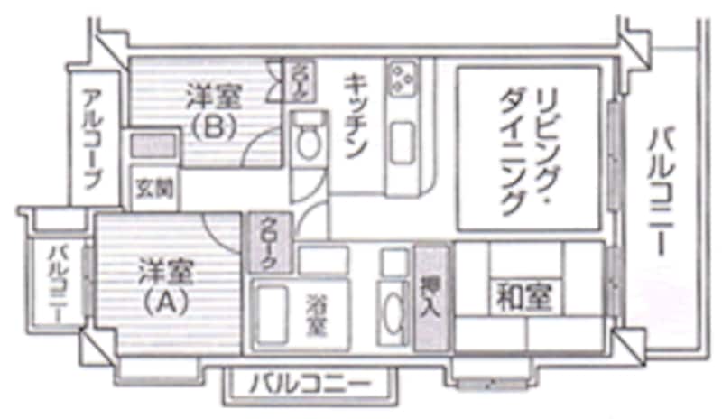 ●「ワイドスパン型」田の字型や中玄関型は縦長の間取りが一般的ですが、これに対して、間口が広く正方形に近いタイプを「ワイドスパン型」と呼びます。間口が広い分、バルコニーに面する長さも長くなり、日当たりも良く開放感のある間取りとなります。和室、リビング、洋室の三室がバルコニーに面する「南三室タイプ」や、キッチンをバルコニー側に配置した間取りが可能です。●「角住戸型」また、「角住戸型」は窓が多いため人気のタイプです。しかし、左右を住戸にはさまれた中住戸に比べ、冷暖房の効率はやや落ちます。このほか、二階構造の「メゾネット型」や、購入時に好みを反映できる「フリープラン型」など、不動産会社によっても間取りタイプにはさまざまなバリエーションがあります。ぜひ家族構成やライフスタイルに適した、自分にピッタリの間取りを探してみてください。出典「マンション購入 完全チェックリスト」(大森広司/日本実業出版社)前のページへ12※記事内容は執筆時点のものです。最新の内容をご確認ください。あわせて読みたいサービスバルコニーとは?バルコニーの違い、種類や楽しみ方も紹介マンションの花粉対策を解説。一戸建てにも適応可能!二人暮らしに向く間取り液状化って?マンション選びで知っておきたい地盤のポイントツインコリドール型やボイド型って?マンションのアクセス方式を解説地震が起きたらどこに逃げると安全?田の字プラン:マンションの間取りの基本