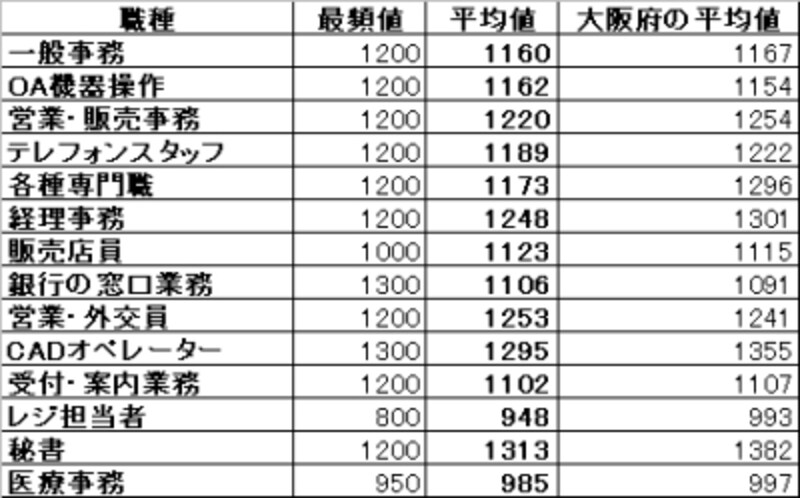 お仕事別 派遣の時給 関西編