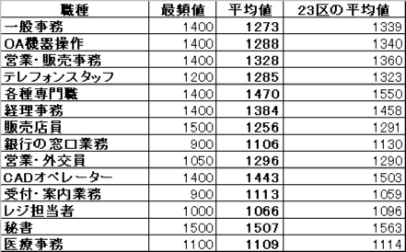お仕事別 派遣の時給 関東編