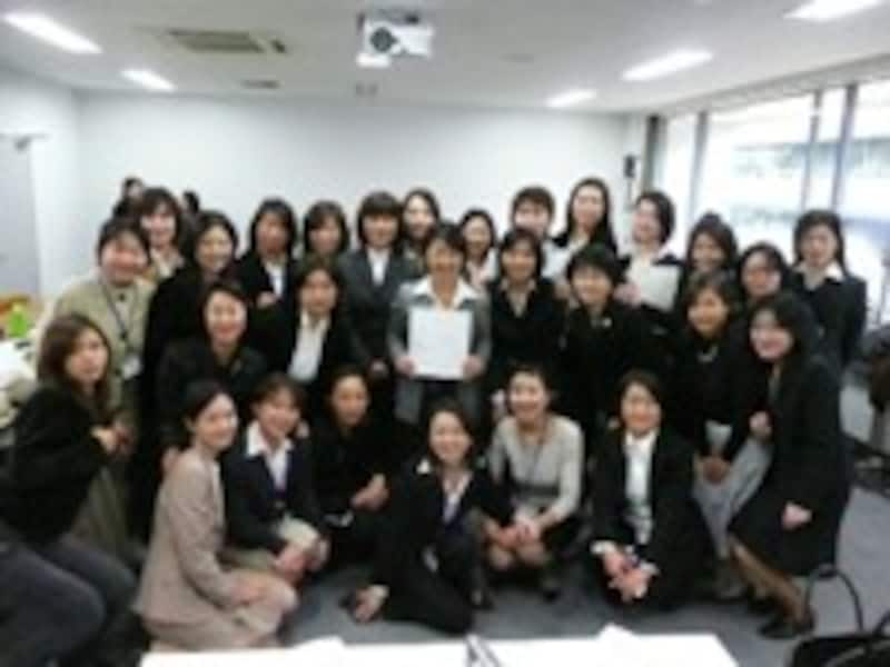| 受講生の皆さんに囲まれて上田先生のカメラで記念写真。 |