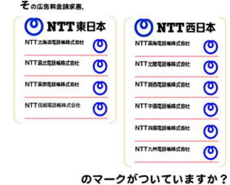 電話帳広告については、全国10社の販売編集会社である、NTT●●電話帳株式会社が行っております。●●は担当地域名が入ります。