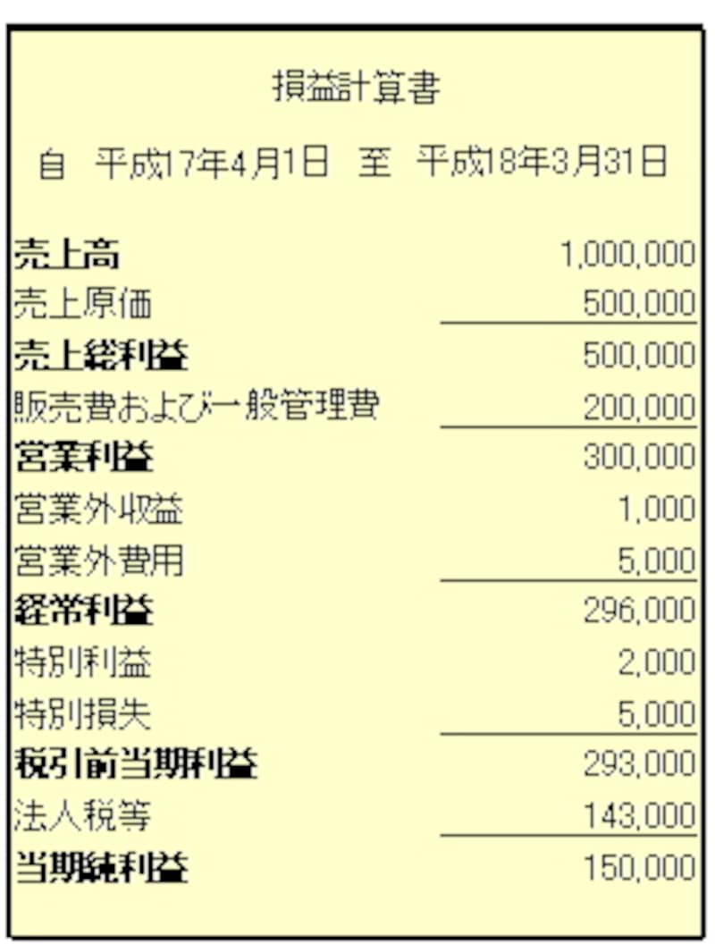 損益計算書は当期純利益の表記までに