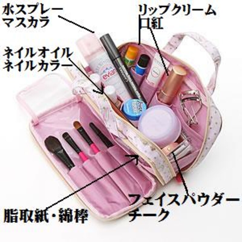 毎日持ち歩く化粧ポーチ。使用頻度が高い分、外側が汚れゴミがたまりやすいのも事実。外側は拭き取りやすいビニールコーティング製、中身はポケットが適度にありコスメ類が中でバラつかないものがオススメです。