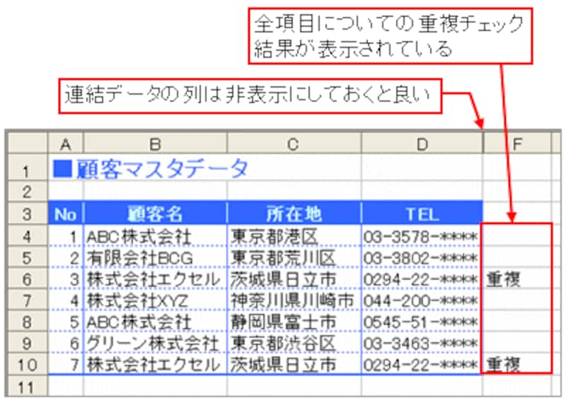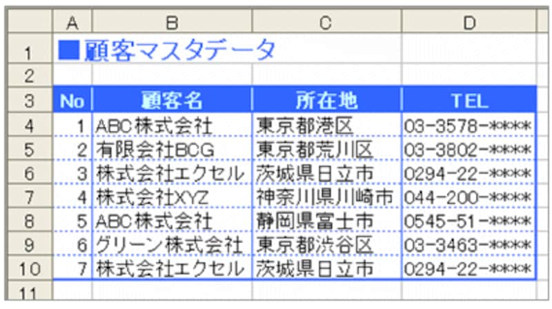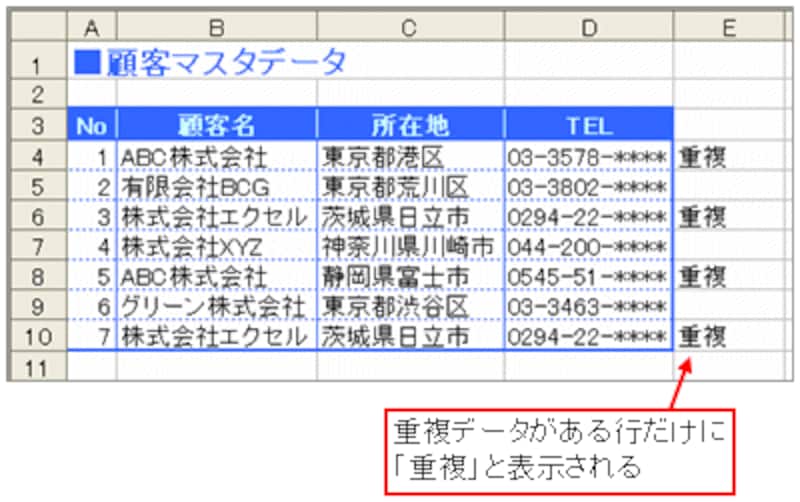 ここでは、次のような顧客マスタデータをサンプルとして、重複データをチェックする方法を解説します。![]() |