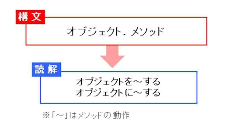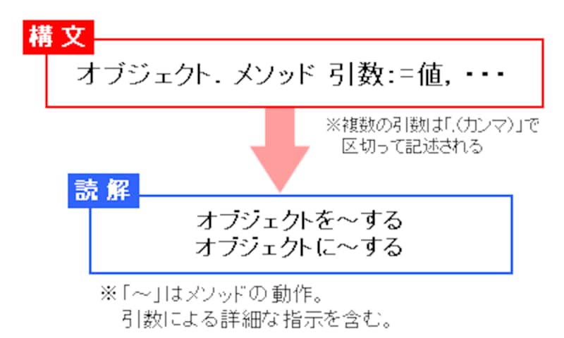 まとめると、メソッドでオブジェクトを操作するステートメントは、次のような構文になります。