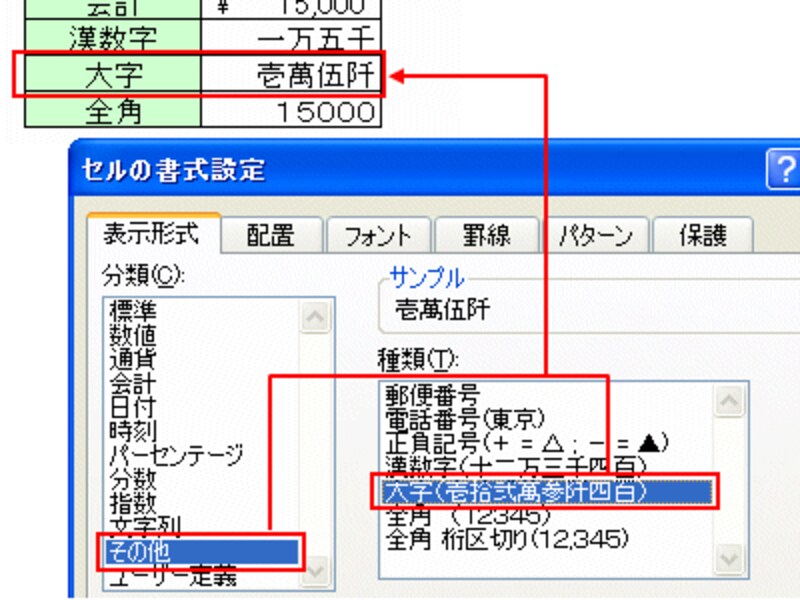 分類で「その他」を選択し、種類で「漢数字」を選択します。![]() |