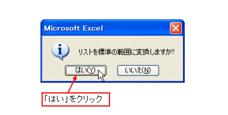 確認メッセージが表示されたら、「はい」をクリックします。