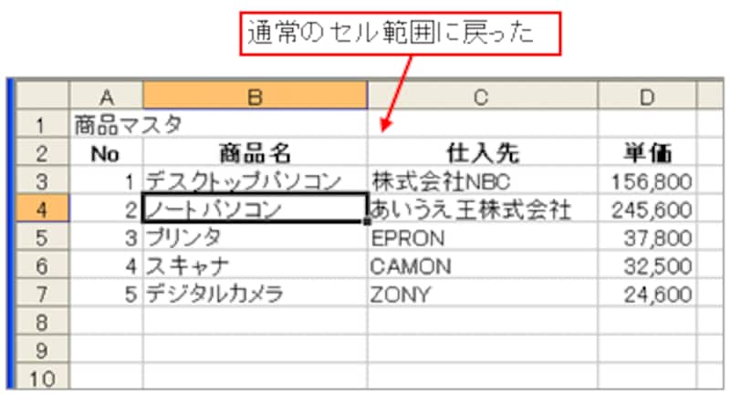 これで、通常のセル範囲に戻りました。