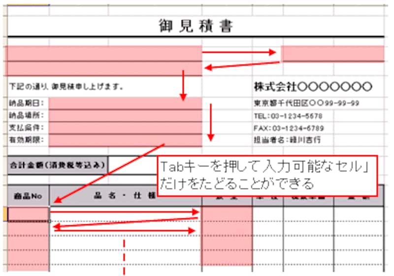 また、Tabキーを押すと、入力が必要なセルだけをたどることができます。これで、より作業効率が上がる、便利な御見積書になりました!