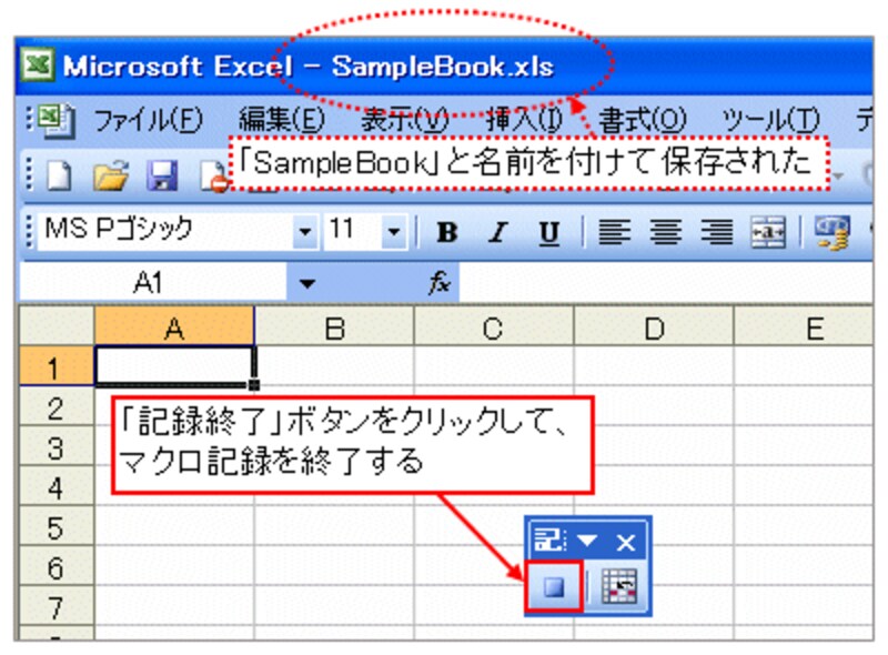 ここまでで、マクロの記録を終了します。