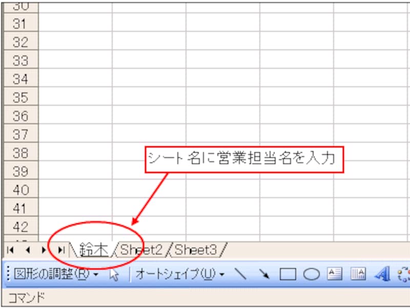 シート名に営業担当名を入力します。ここでは「鈴木」と入力します。
