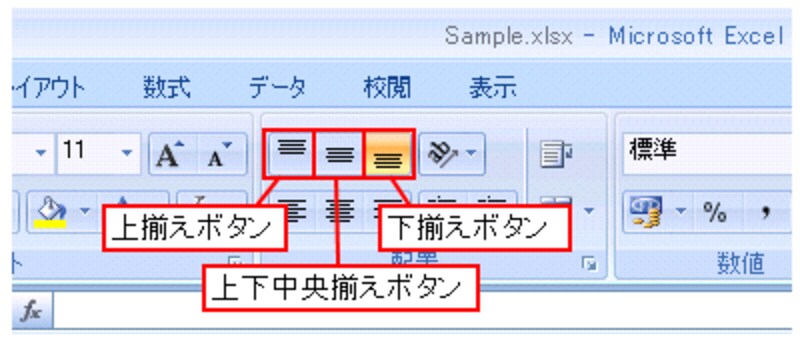 ■上揃えボタン・上下中央揃えボタン・下揃えボタン