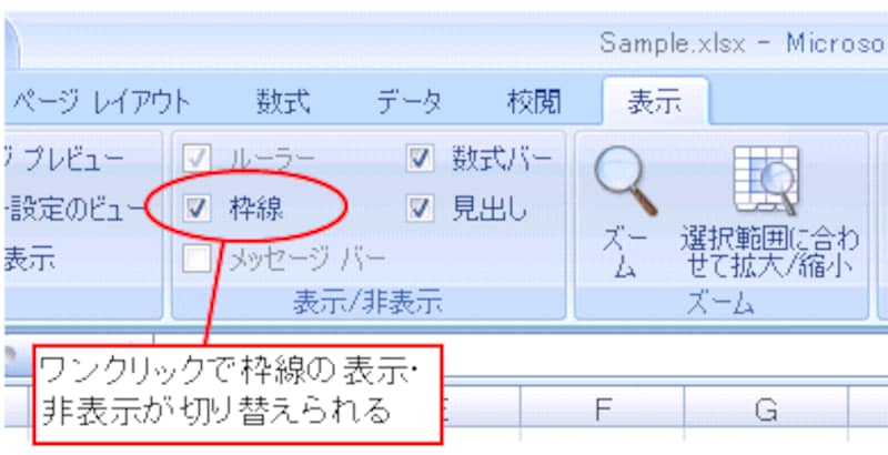 ワンクリックで枠線の表示・非表示が切り替えられます!