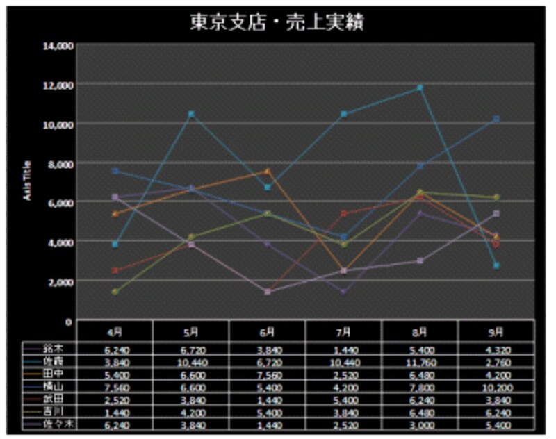 いかがでしょうか。このような見栄えのするカッコ良いグラフを手軽に作成できるのです! 表からグラフを作成する手順もより簡便になり、見栄えのするスタイルをワンクリックで設定できるのも魅力的です。また、グラフの種類やレイアウトも簡単に変更できます。