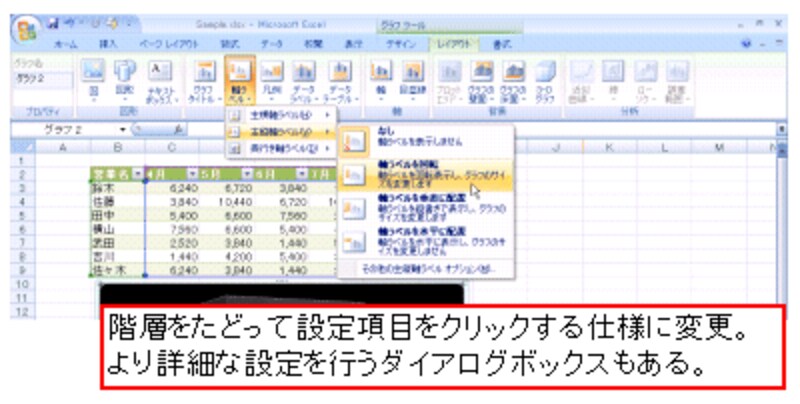 「レイアウト」タブでは、グラフの各設定項目が選びやすく、操作しやすい仕様になっています。