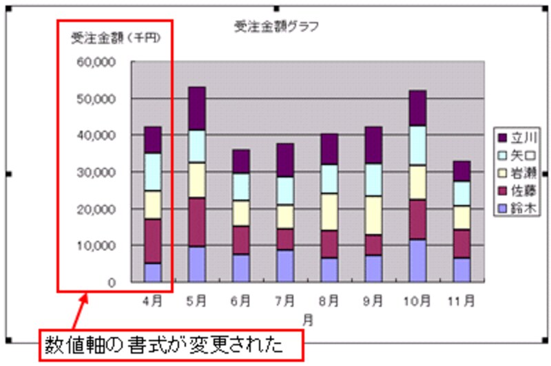 数値軸の書式が変更されました。