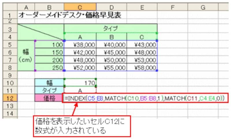 この数式が、価格を表示したいセルC12に入力されています。