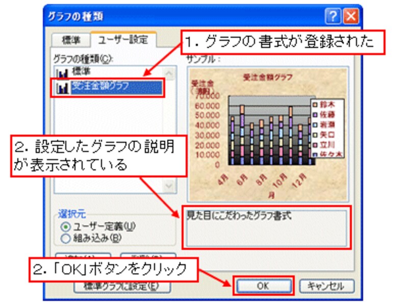 グラフの書式が登録されました!「OK」ボタンをクリックします。