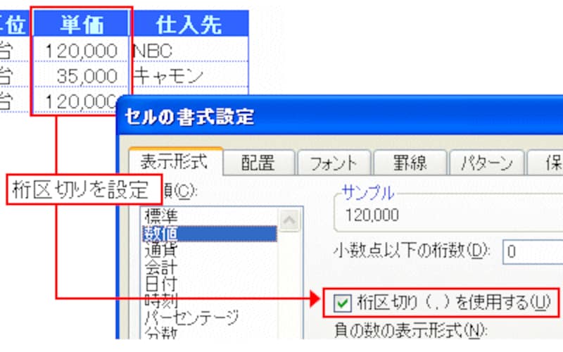 ●数値の桁区切りなど、セルの書式を設定する