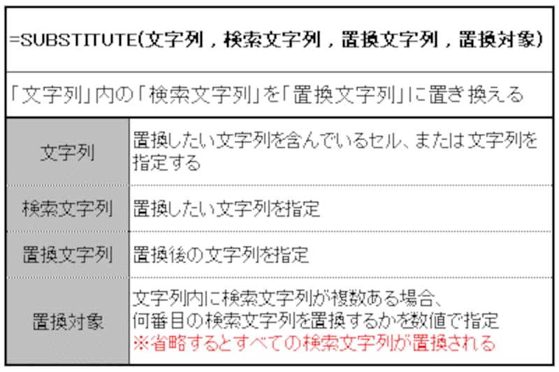 | ※引数「置換対象」は省略しています。 |
