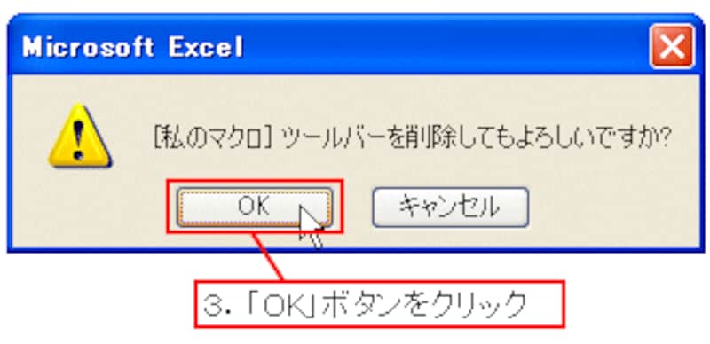 削除の確認メッセージが表示されるので、「OK」ボタンをクリックします。