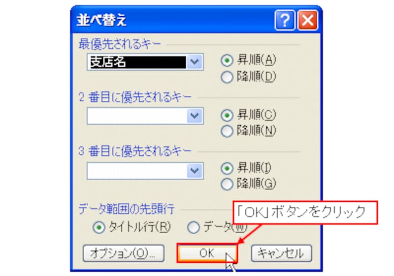 「並べ替え」ダイアログボックスの「OK」ボタンをクリックします。
