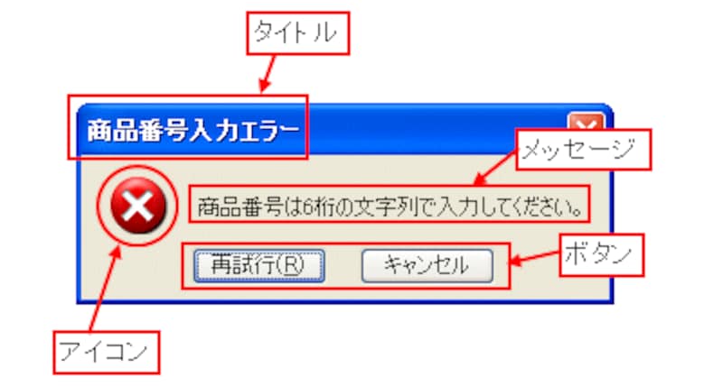 冒頭でご覧頂いたエラーメッセージは柔軟にカスタマイズできます。このエラーメッセージを、正しいデータが何なのかがわかるように修正します。タイトルやメッセージだけでなく、ダイアログボックスのアイコンとボタンも設定可能です。