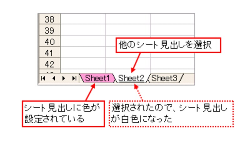 | ※Excel2002より前のバージョンでは、シート見出しに色を設定できません。 |
