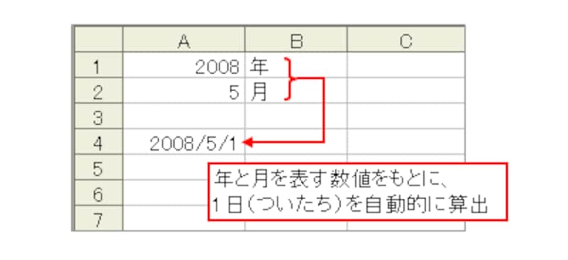 年と月を表す数値をもとに、1日(ついたち)を自動的に算出します。