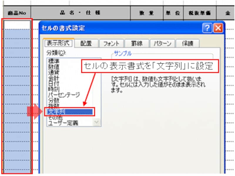 商品No欄の追加しよう 御見積書の見積明細部分に「商品No」欄を追加します。 「品名・仕様」欄がA~C列を結合されているので、結合を解除してA列を「商品No」欄とし、「品名・仕様」欄はB~C列を結合することにします。 なお、商品No欄のセルの表示書式は「文字列」に設定します。 前のページへ1234次のページへ