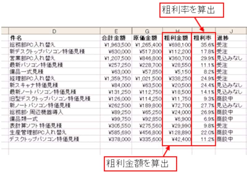 ■合計金額と原価金額から粗利金額、粗利率を計算する項目