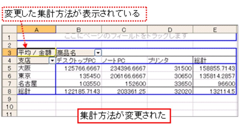 集計方法を変更する(Excel 2003の場合)