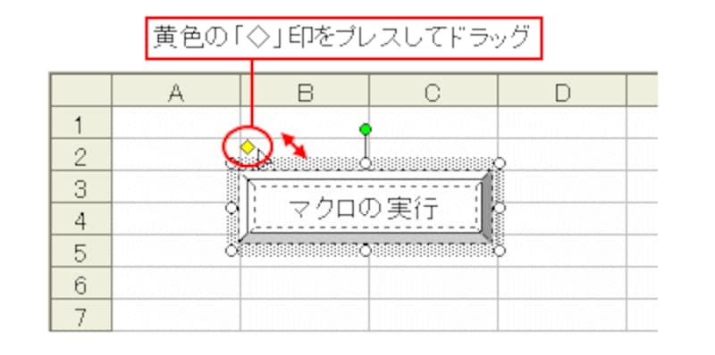 なお、縁の部分の幅を調整するには、オートシェイプを選択したときに左上に表示される黄色の「◇」印をプレス(マウスの左ボタンを押したままにする操作)してドラッグします。