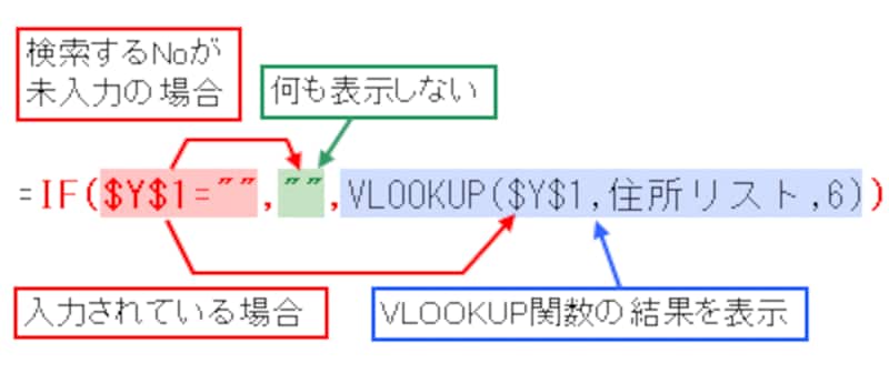 Noが未入力の場合、Noが検索できないので「#N/A」エラーが発生します。このエラーに備えて、IF関数による制御を施しておきます。