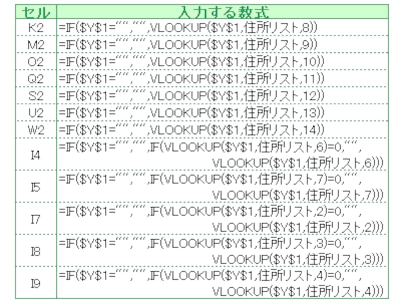 VLOOKUP関数を入力していきます。ポイントは、設定したセル範囲名を使用して、住所リストのセル範囲を指定する点です。この方法だと、別ワークシート上のセル範囲を簡単に指定できます。