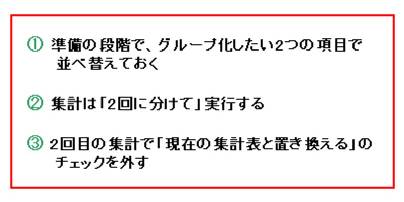 複数の項目で集計する手順は次の3つです。これらの手順を頭に入れて、実際に操作してみましょう。