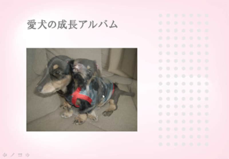 いかがでしたか?これなら、写真をたくさんスライドに並べずにすむ上に、写真を印象的に見せることができますね。こういった写真の見せ方は、プライベートシーンだけでなく、会社の歩みや製品の変遷など、時系列で写真を見せるときに効果を発揮します。