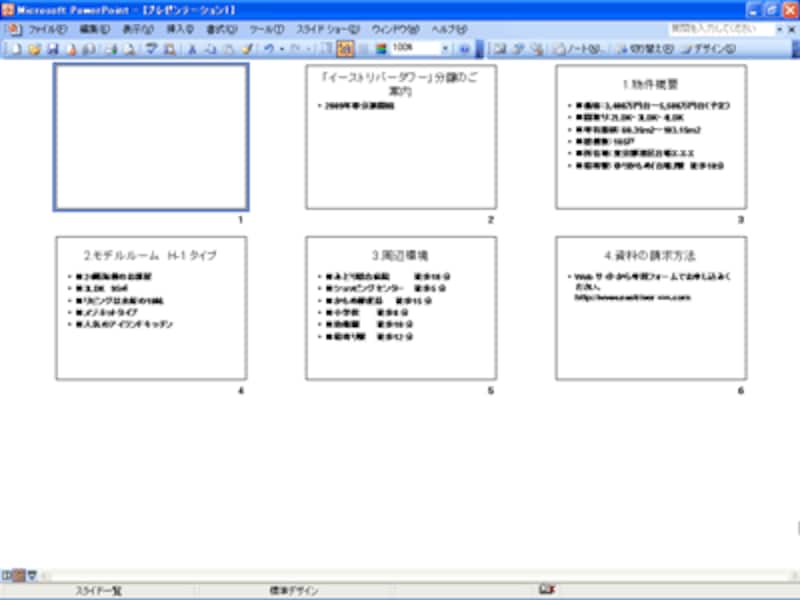 | ここでは、各スライドが見えやすいように、スライド一覧表示モードに切り替えている |