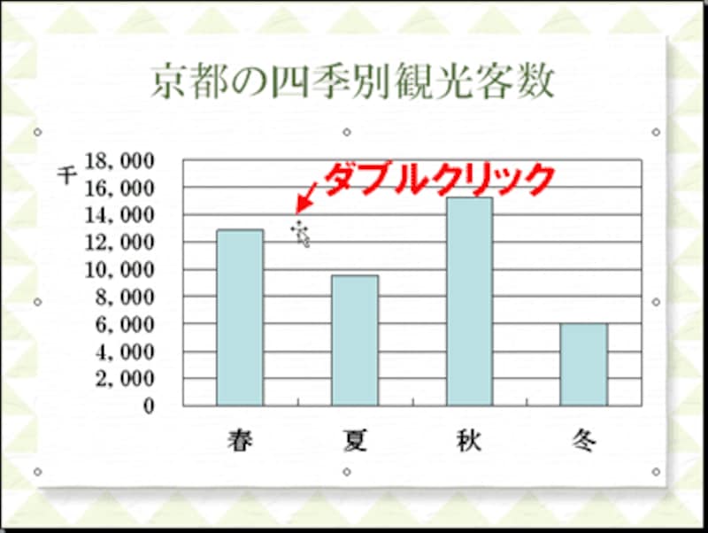 写真の準備ができたら、スライド上のグラフをダブルクリックして、グラフを編集できる状態に切り替えます。