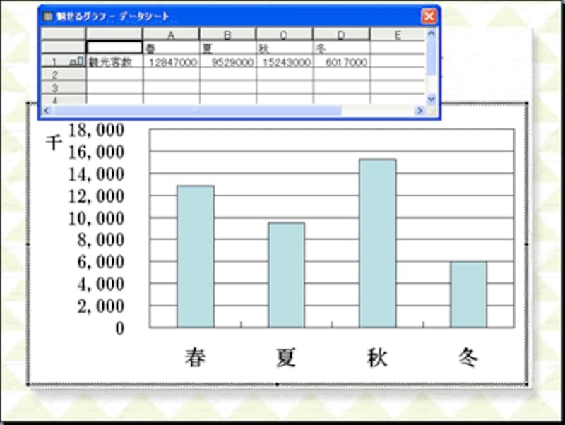 グラフのまわりに斜線の枠が付き、グラフの元になる「データシート」が表示されれば準備完了です。