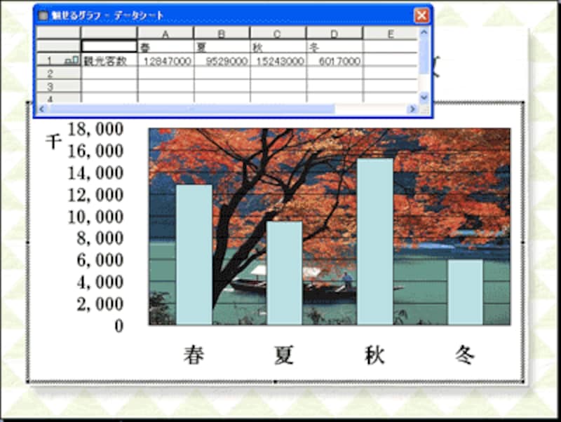 | 写真をグラフの背景に使うときは「図」タブを使う |
