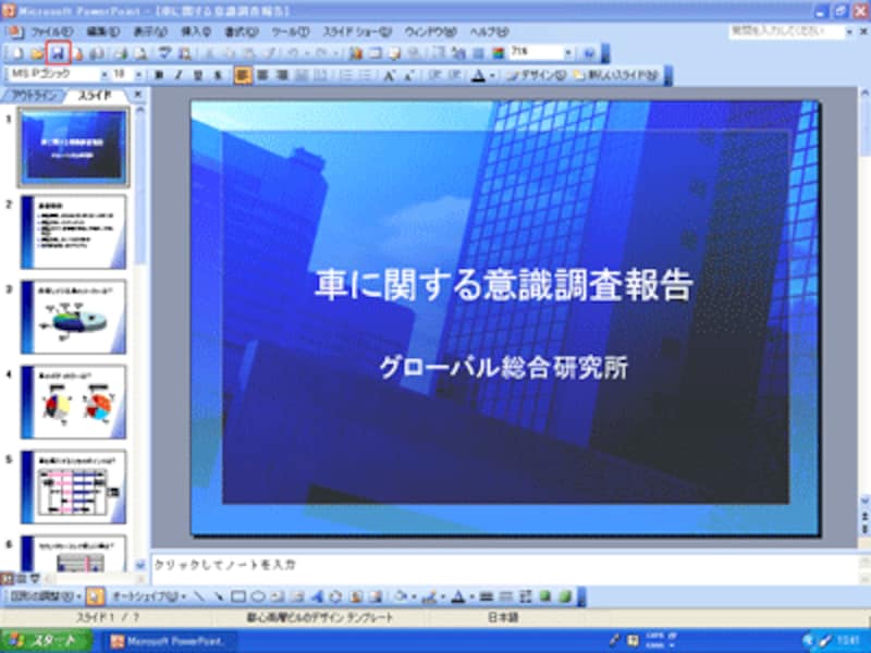 通常のプレゼンテーションファイルと同じように、スライドショー形式のファイルを開くことができました。スライドの修正が終了したら、ツールバーの「上書き保存」ボタンをクリックして変更を上書きしてください。わざわざ、もう一度スライドショー形式で保存し直さなくても、スライドショー形式のファイルの内容が更新されます。
