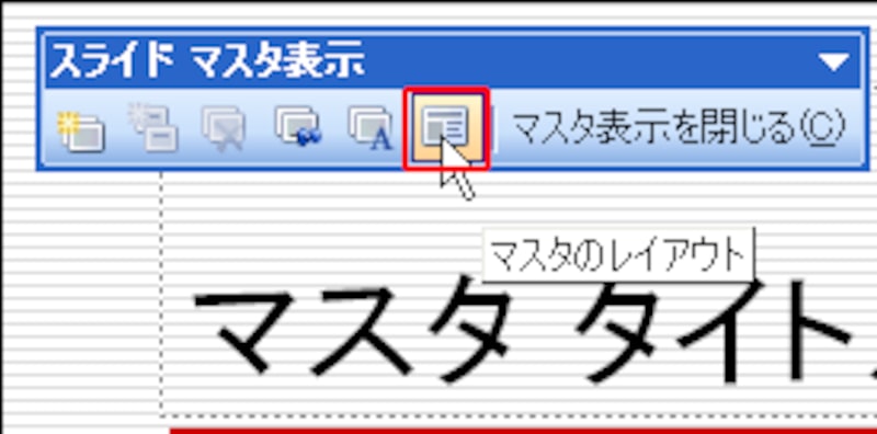 マスタ画面で削除してしまったプレースホルダを復活させるには、「スライドマスタ表示」ツールバーの「マスタのレイアウト」ボタンをクリックし、表示される画面で「スライド番号」をクリックしてチェックを付けます。