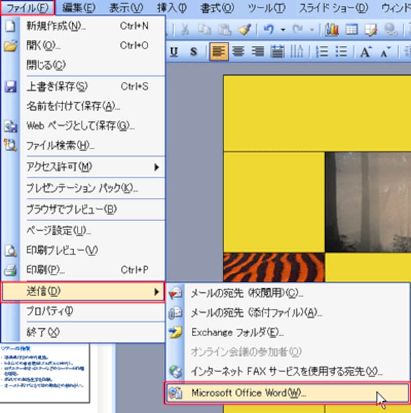 | スライドとノートの内容をWordに送る |